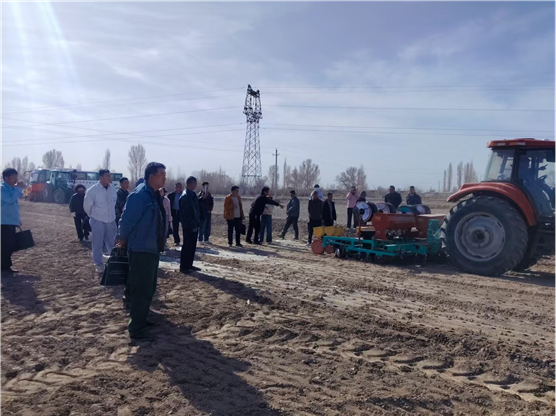 为落实“藏粮于地,藏粮于技”战略,加快推进玉米生产全程机械化,助力粮食增产增效与农业高质量发展。4月1日,甘肃省玉门市农机局在下西号镇川北镇村举办农机研发制造推广应用一体化试点项目机具试验验证与示范推广现场演示培训活动。全市各乡镇农机专干、项目实施主体合作社负责人、种植大户、农机手等共计40余人齐聚田间,共同观摩先进机具作业成效,近距离了解新型农机优势,交流推广高效种植技术。